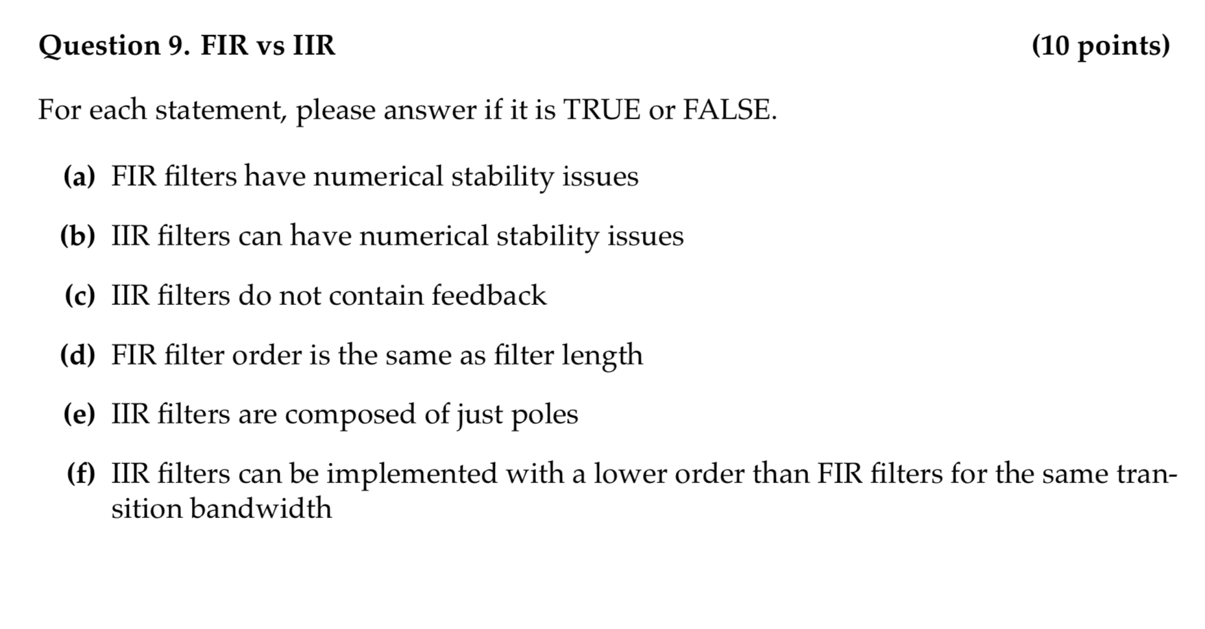 Solved Question 9 Fir Vs Iir 10 Points For Each Chegg Com